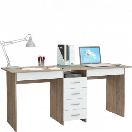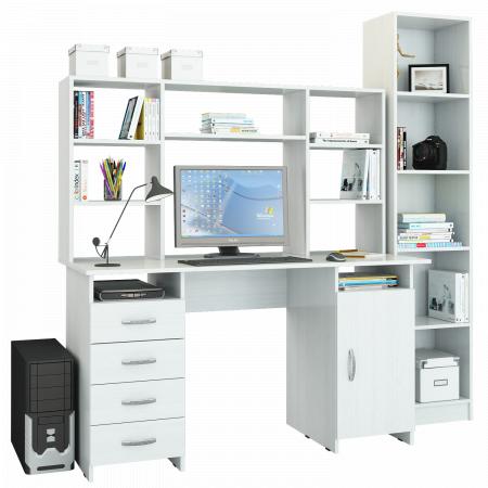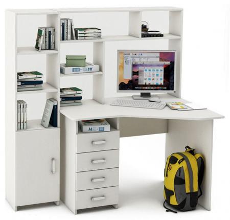 Письменные столы Для школьников Угловые Белого цвета Для двоих С полками С ящиками С надстройкой С тумбой